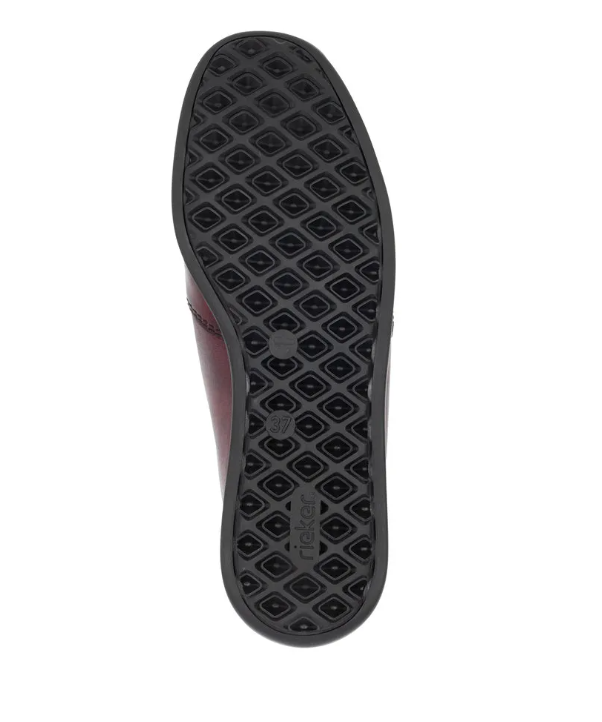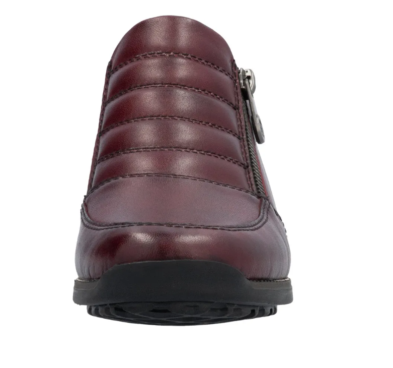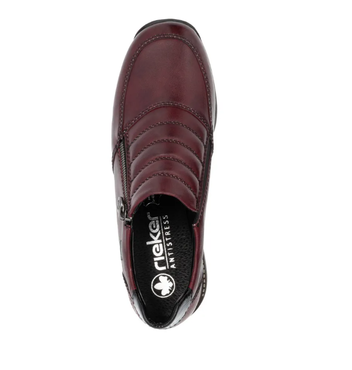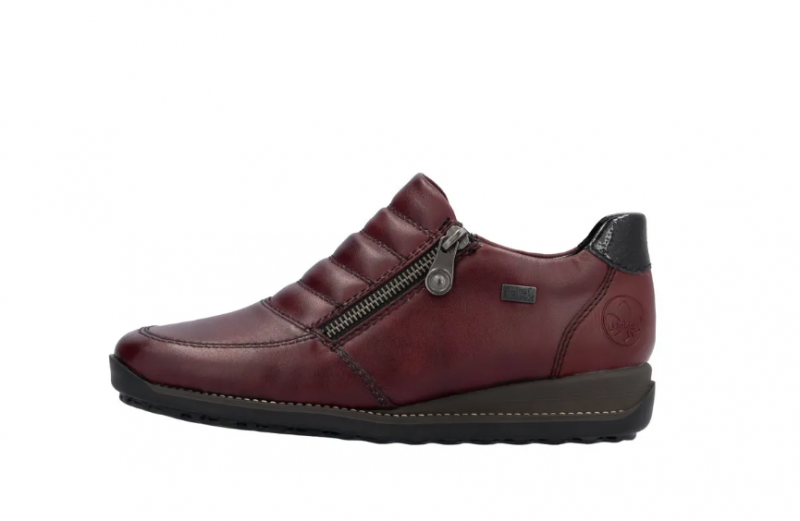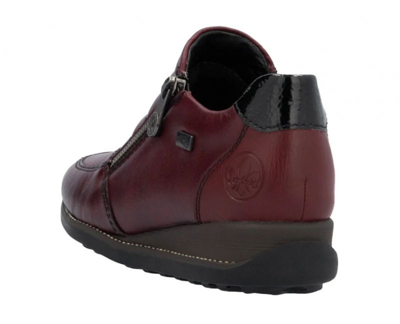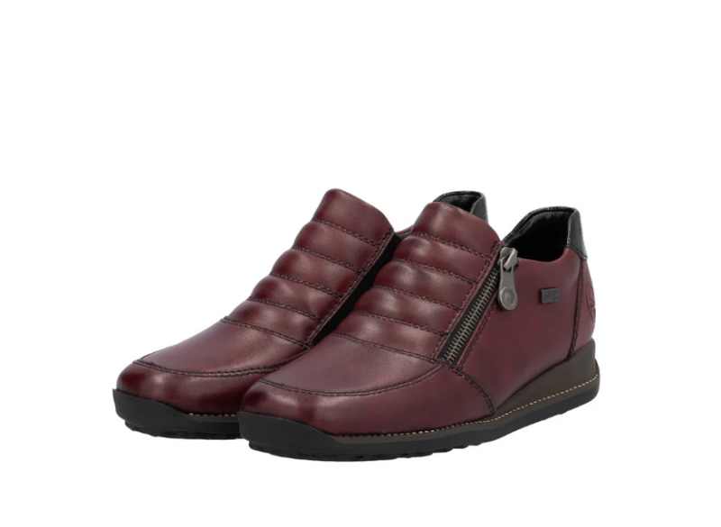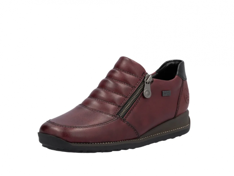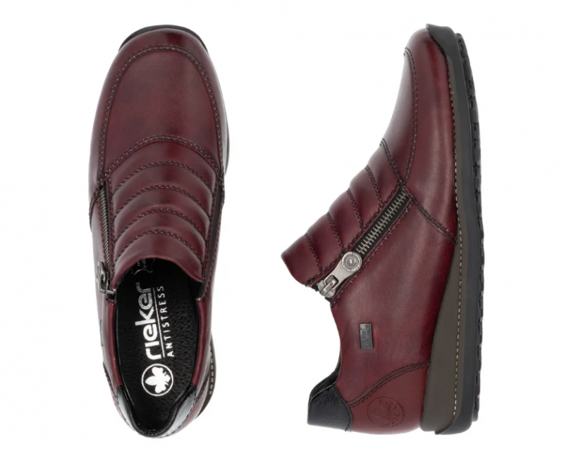 Ez a női Rieker cipő 100%-ban vízálló, mégis szellőzik. Oldalt zippzárral működik. Szép bordó a színe. A Rieker Antistress segít abban, hogy egész nap kényelmesen hordhassa a cipőjét. Ütéscsillapító hatású a talpa, jól hajlik, könnyű a kialakítása, és puhán párnázott a talpbetét.