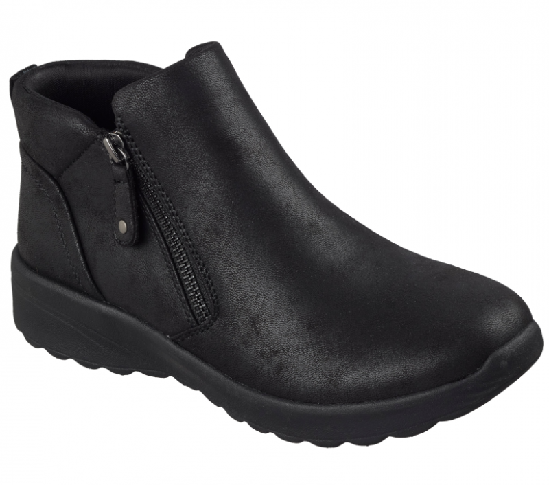 Ez a Skechers utcai bokacsizma kiváló minőségű anyagokból készülnek, és memóriahabos talpbélésük biztosítja, hogy egész nap kényelmesek maradjanak. Oldalt zippzáros, ami segíti a könnyebb felvételt. Talpa hajlékony. A cipő pille könnyű, így nem terheli meg a lábat.