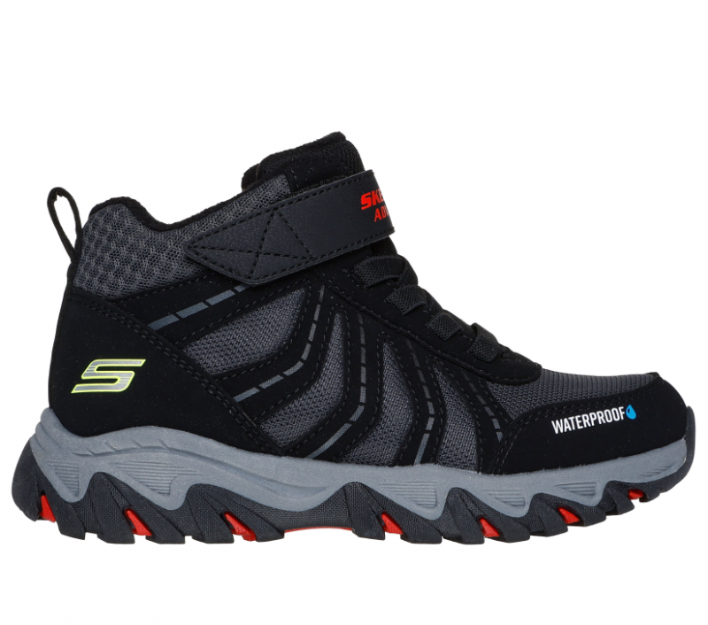 Skechers Adventure fiú bakancs fekete színben, puha béléssel. 100%-ban vízálló, kalandvágyó gyermekeknek ajánlott. Talpa mélyen bordázott, jól tapad