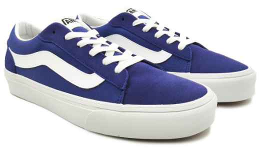 VANS férfi vászoncipő, ami velúrbőr és vászon kombinációjával készült. Kék és fehér színű, talpa gumiból készült, waffle-talp kialakítással, ami kiváló tapadást nyújt. Mindennapokra jó választás.
