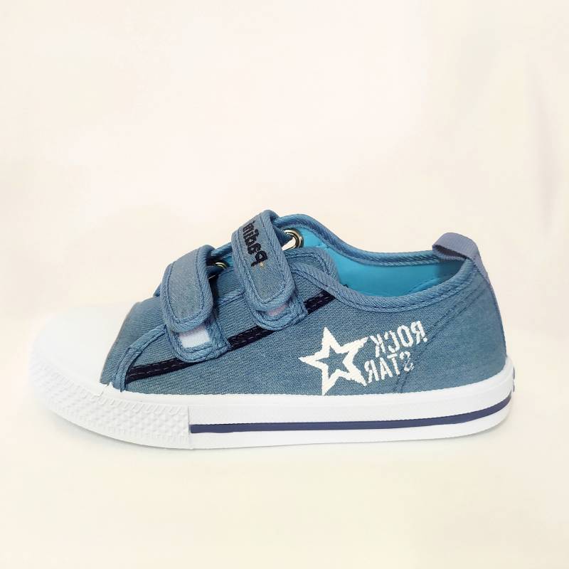 Farmerkék színű, vékony, könnyű, tavaszi-nyári vészoncipő. Kinti és benti használatra is alkalmas.